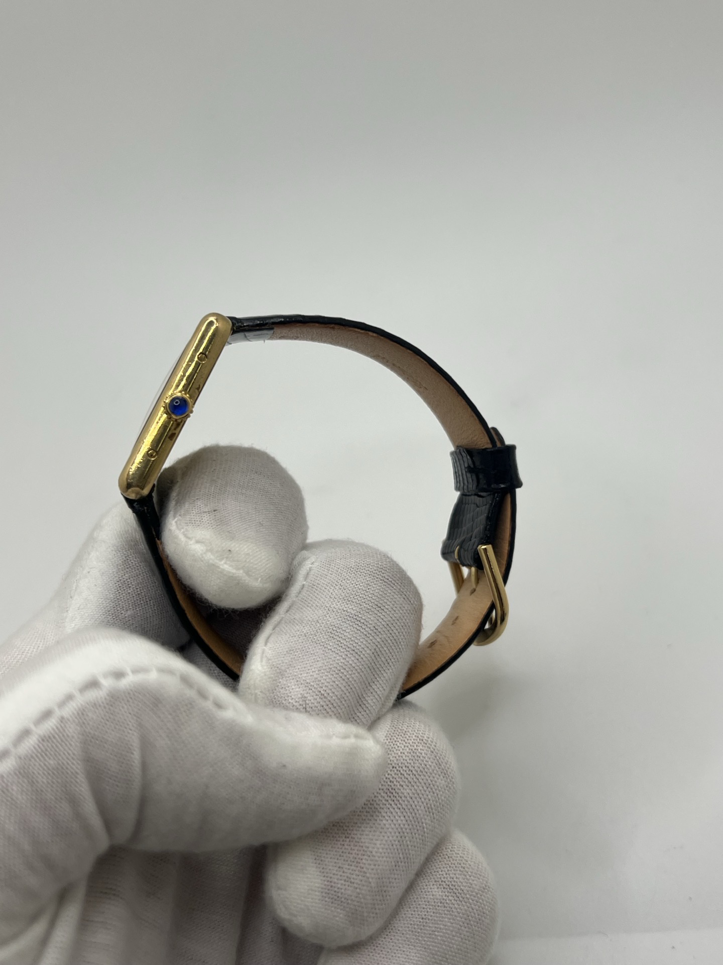 Ce modèle en vermeil — argent massif recouvert d’or — offre un éclat chaleureux et une élégance subtile, fidèle à l’esthétique Cartier de cette période. Son format Grand Modèle de 30 x 24 mm apporte une présence affirmée tout en conservant une grande finesse au poignet, idéale aussi bien pour un style chic que pour un port quotidien élégant.