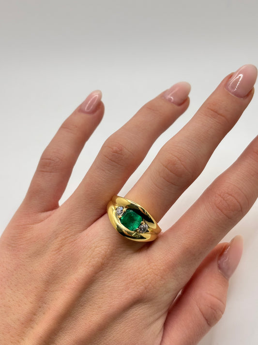 Bague or jaune émeraude 2 ct et diamants 0,40 ct